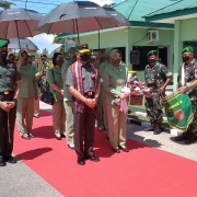 Tenggarong – Asisten II Setkab Kukar Bidang Ekonomi dan Pembangunan bersama unsur Forum Koordinasi Pimpinan Daerah (Forkopimda) Kukar termasuk Dandim 0906 Kukar Letkol Inf Jeffry Satria, menyambut kunjungan kerja dan silaturahmi Komandan Korem 091/Aji Surya Natakesuma (ASN) Brigjen TNI Dendi Suryadi dan Ketua Persit Kartika Candra Kirana ASN Ira Dendi Suryadi ke Kodim 0906 Kukar, Rabu (11/5) di Tenggarong.