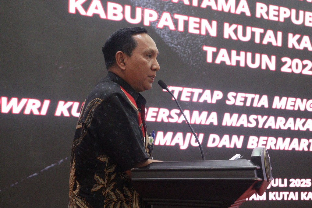 Tenggarong – Sekretaris Daerah (Sekda) Kutai Kartanegara (Kukar) Sunggono membuka Pusat Pendidikan dan Pelatihan (Pusdiklat) Pasukan Pengibaran Bendera Pusaka (Paskibraka) Kukar 2025, Jumat (25/7) di Pendopo Odah Etam, Tenggarong, ditandai pemasangan tanda dan perlengkapan siswa.