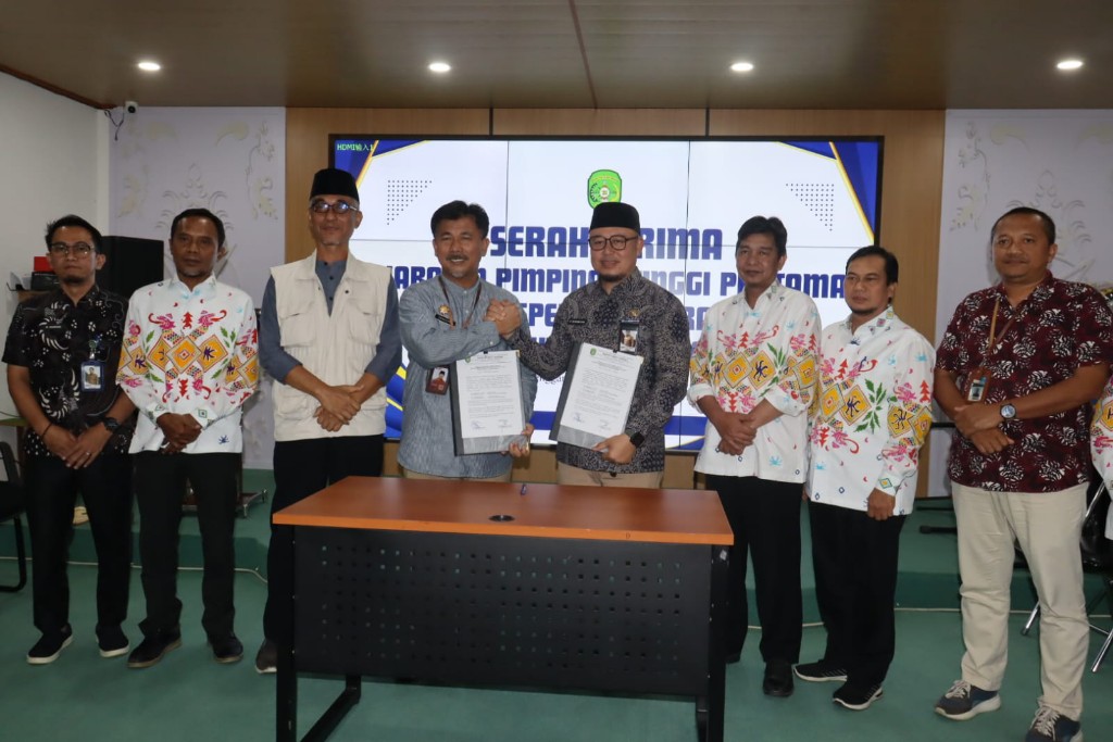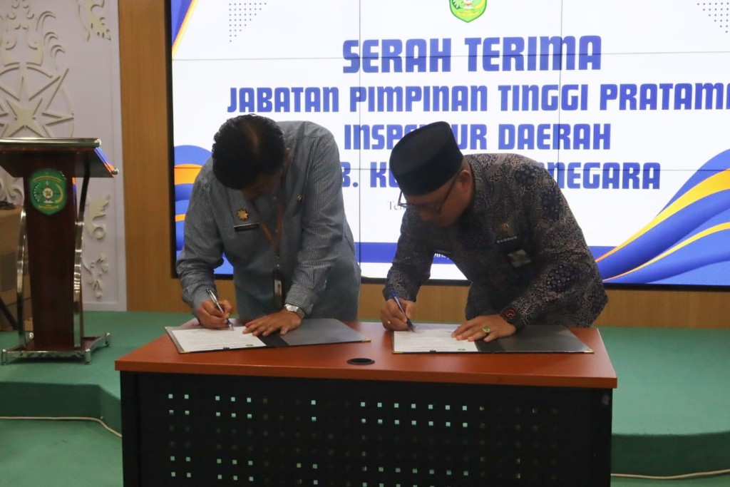 /in Uncategorized /by Admin 2 KukarpaperTenggarong – Sekretaris Daerah Kabupaten Kutai Kartanegara (Kukar) H. Sunggono yang ditunjuk sebagai Pelaksana Tugas (Plt) Kepala Inspektorat Kabupaten Kukar melaksanakan serah terima jabatan (sertijab) dengan H. Heriansyah yang kini mengemban amanah baru sebagai Kepala Dinas Pendidikan dan Kebudayaan Kukar. Kegiatan tersebut berlangsung di Ruang Rapat Inspektorat Kukar, Jumat (13/2/2026), dan dihadiri seluruh staf serta Dharma Wanita Persatuan (DWP) Inspektorat.