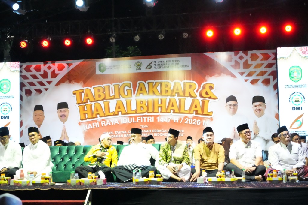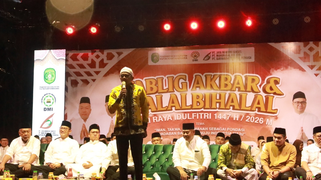 /in Uncategorized /by Admin 2 KukarpaperTenggarong – Bupati Kutai Kartanegara (Kukar) dr. Aulia Rahman Basri bersama Forum Koordinasi Pimpinan Daerah (Forkopimda) Kabupaten Kukar, hadiri Tabligh Akbar dan Halal Bihalal Idul Fitri 1447 H/2026 M bertempat di Lapangan Upacara Kantor Bupati Kukar, Sabtu (11/4) malam. Dengan menghadirkan Ustadz Cahyadi Batubara, jebolan Da’i Akademi Sahur Indonesia (Aksi) Indosiar.