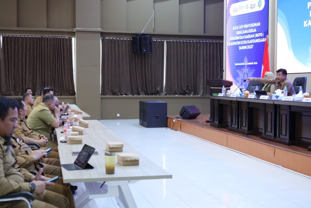 Hal tersebut disampaikannya saat membuka Kick Off Meeting Penyusunan RKPD Pemerintah Kabupaten Kukar Tahun 2027 yang digelar di Ruang Serbaguna Badan Perencanaan Pembangunan Daerah (Bappeda) Kukar, Senin (12/1/2026). Kegiatan tersebut diikuti oleh seluruh Organisasi Perangkat Daerah (OPD) serta perwakilan kecamatan se-Kukar.