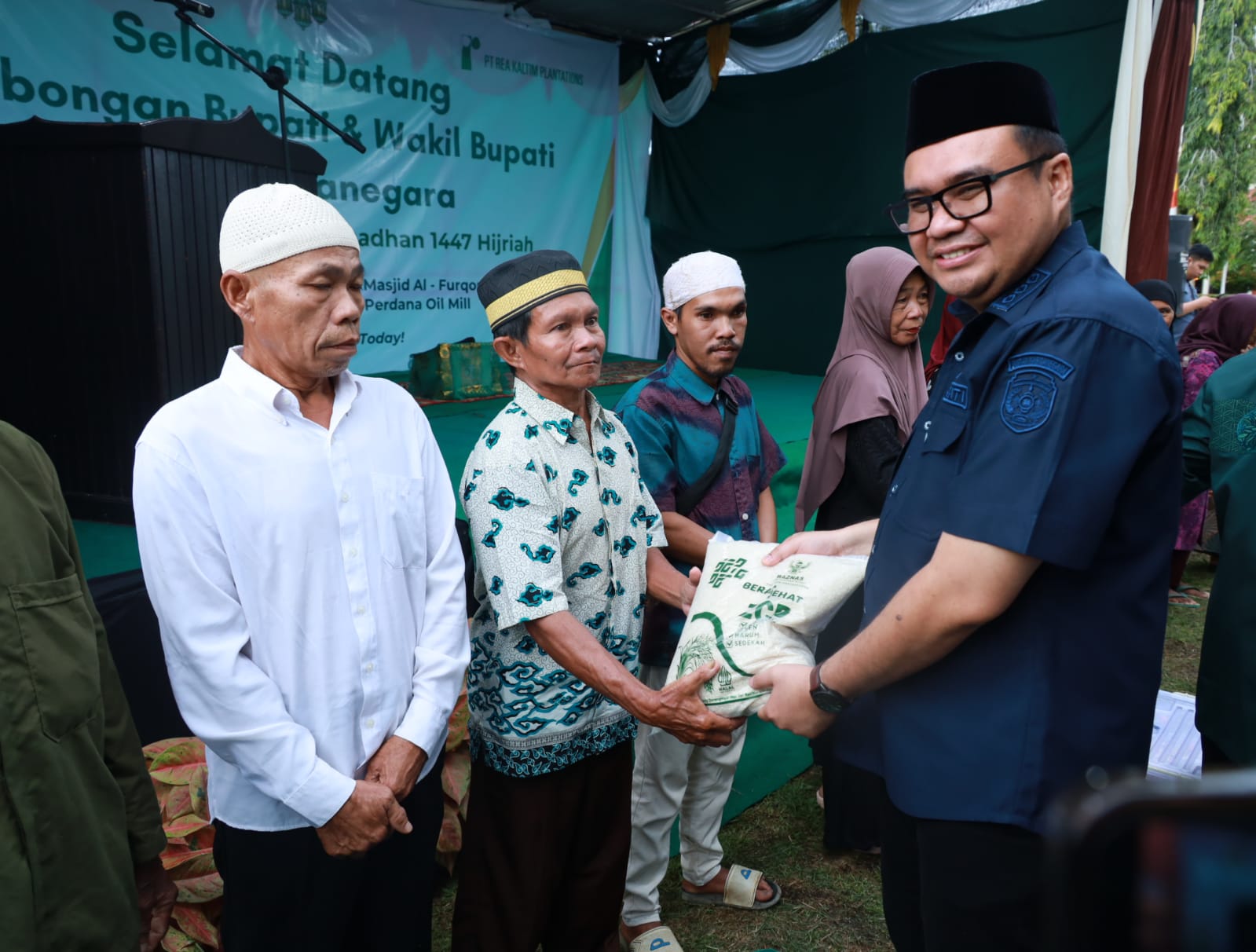 Pada kesempatan tersebut selain penyerahan sembako dan bahan makanan dari pengurus DWP Kukar juga diserahkan bantuan makanan untuk berbuka puasa dari pengurus Baznas Kukar yang diserahkan oleh Wiwik Angranti ( Wakil Ketua II Bidang Pendistribusian dan Pendayagunaan ).