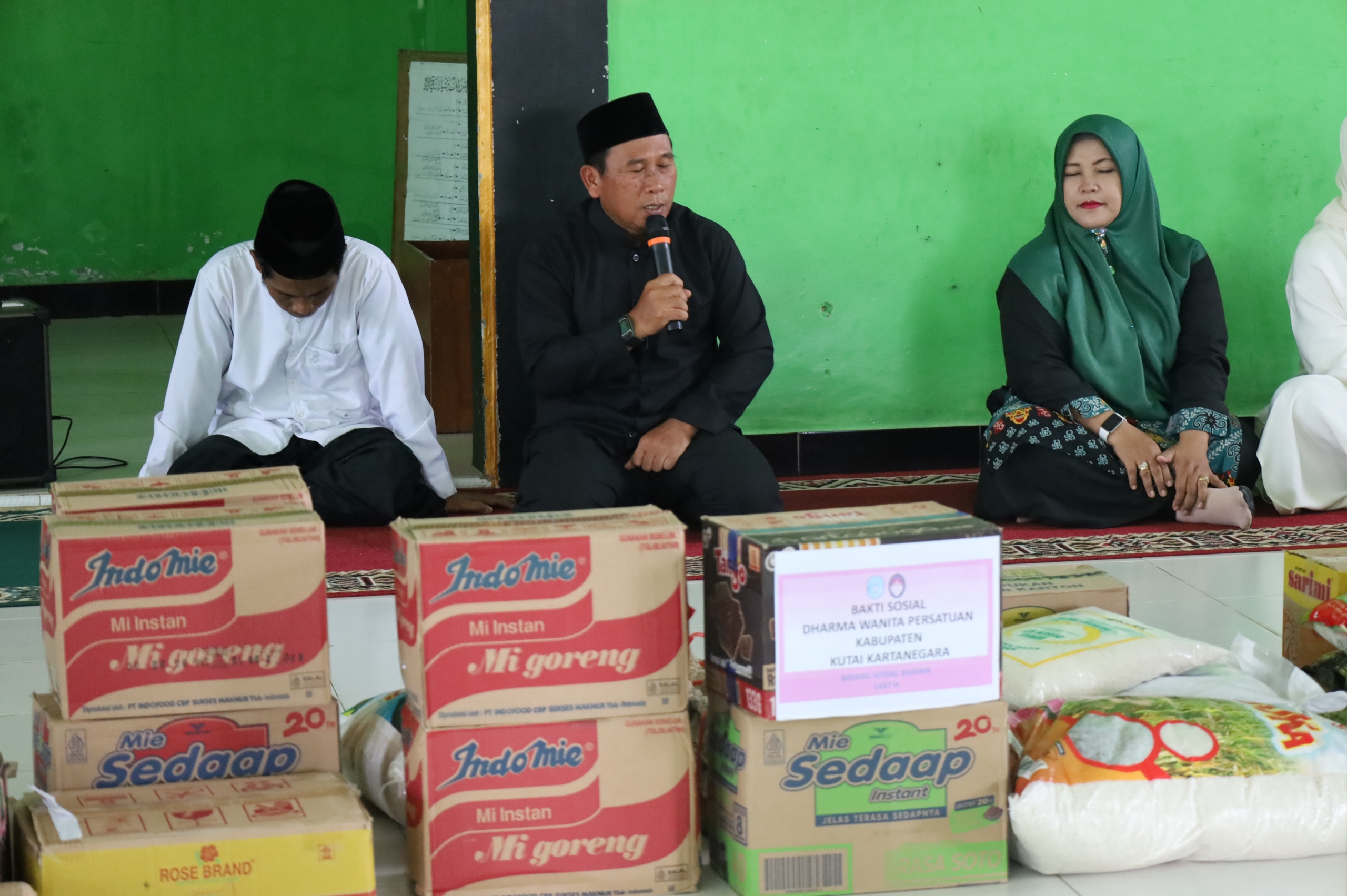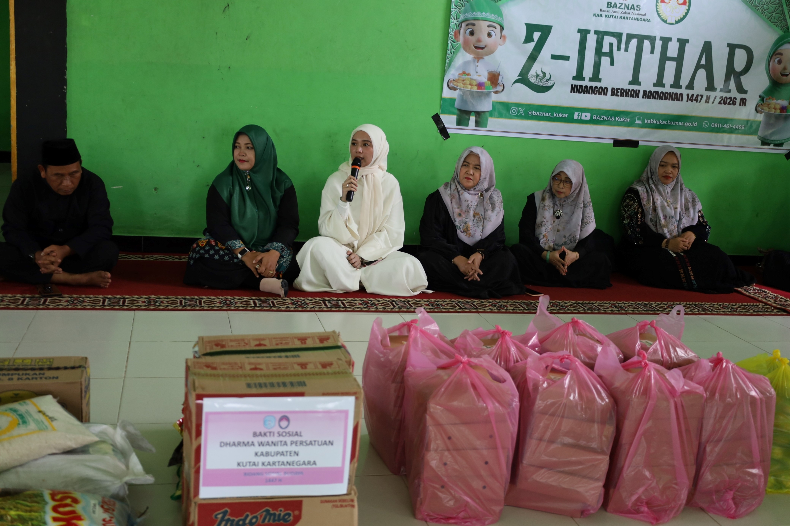 Pada kesempatan tersebut selain penyerahan sembako dan bahan makanan dari pengurus DWP Kukar juga diserahkan bantuan makanan untuk berbuka puasa dari pengurus Baznas Kukar yang diserahkan oleh Wiwik Angranti ( Wakil Ketua II Bidang Pendistribusian dan Pendayagunaan ).
