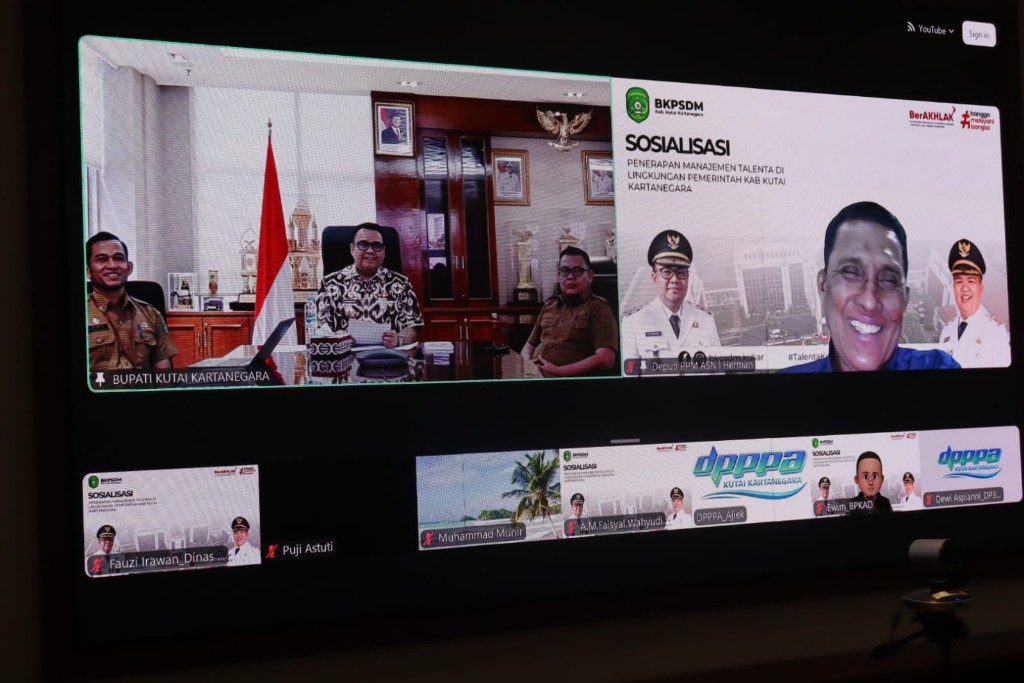 Kegiatan yang diinisiasi oleh Badan Kepegawaian dan Pengembangan Sumber Daya Manusia (BKPSDM) Kukar ini menghadirkan Deputi Bidang Pembinaan Manajemen ASN dari Badan Kepegawaian Negara (BKN), Herman, sebagai narasumber utama. Turut mendampingi Bupati Kukar Aulia Rahman Basri, Plt Kepala BKPSDM Kukar Arianto dan Sekretaris BKPSDM Rokip dari ruang kerja Kantor Bupati.