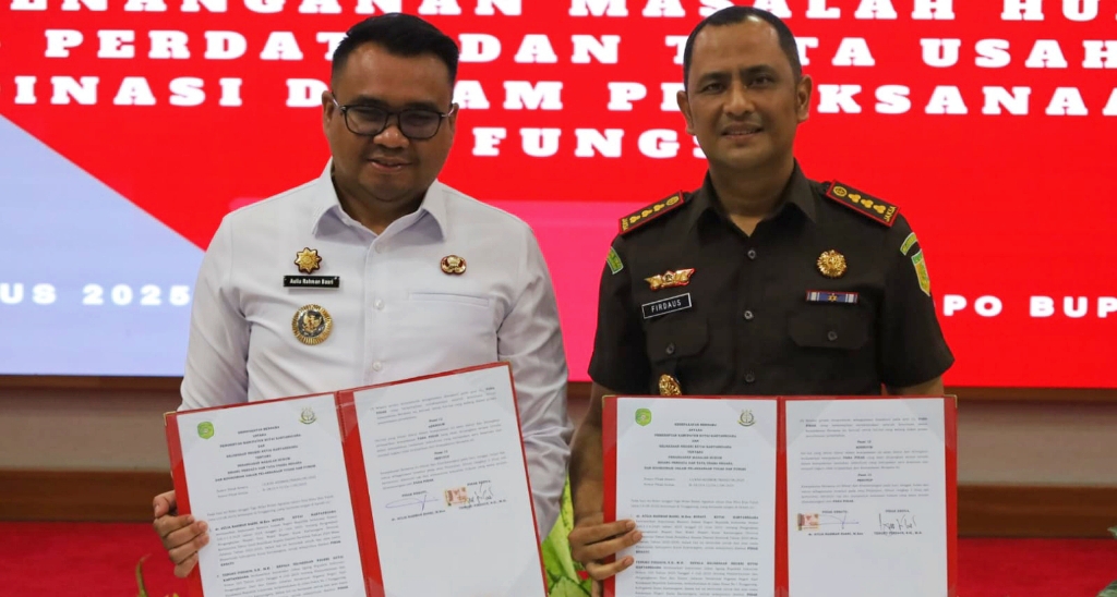Tenggarong – Pemerintah Kabupaten Kabupaten Kutai Kartanegara (Kukar) melakukan penandatanganan kesepakatan bersama dengan Kejaksaan Negeri Kukar tentang permasalahan hukum perdata dan tata usaha negara dan koordinasi dalam pelaksanaan tugas dan fungsi. Berita acara ditandatangani oleh Bupati Kukar Aulia Rahman Basri dan Kepala Kejaksaan Negeri Kukar Tengku Firdaus, berlangsung di Pendopo Odah Etam Tenggarong, Rabu (13/8/25).