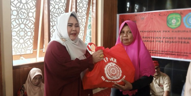 Ketua TP PKK Kukar Serahkan Bantuan Sembako Kepada Kaum Dhuafa di Sangasanga