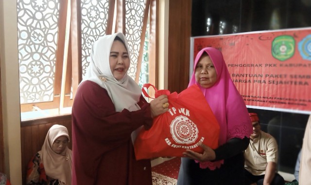 Ketua TP PKK Kukar Serahkan Bantuan Sembako Kepada Kaum Dhuafa di Sangasanga