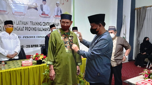 Dipenghujung acara, Sekda Kukar Sunggono menyematkan tanda pin kepada Ustad Sainal Abidin sebagai Lurah Training Centre untuk mengkoordinir peserta selama kegiatan TC ini berlangsung.