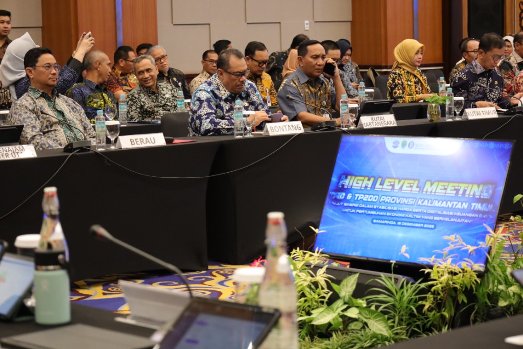 Tenggarong — Pemerintah Kabupaten Kutai Kartanegara (Kukar) yang diwakili Asisten II Bidang Ekonomi dan Pembangunan Ahyani Fadianur Diani bersama perwakilan 10 kabupaten/kota se-Kalimantan Timur mengikuti High Level Meeting (HLM) Tim Pengendalian Inflasi Daerah (TPID) dan Tim Percepatan dan Perluasan Digitalisasi Daerah (TP2DD). Kegiatan tersebut digelar di Ruang Maratua, Kantor Perwakilan Bank Indonesia (BI) Kalimantan Timur, Kamis (18/12/2025).
