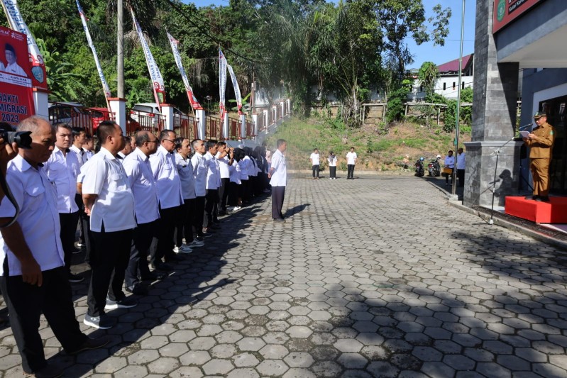 Tenggarong – Plt Asisten III Bidang Administrasi Umum Pemerintah Kutai Kartanegara (Kukar) Dafip Haryanto memimpin Upacara Peringatan Hari Bhakti Transmigrasi ke 73 di Halaman Kantor Dinas Transmigrasi dan Tenaga Kerja (Distransnaker) Kabupaten Kukar , Selasa (12/12/23).