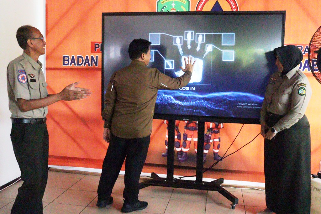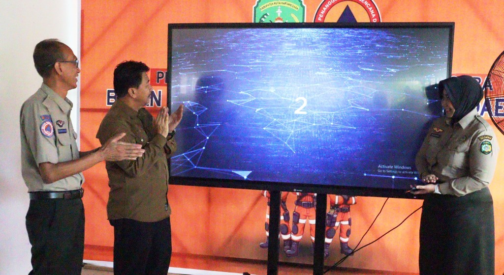 Tenggarong – Sekretaris Daerah Kutai Kartanegara (Kukar) Sunggono, melaunching Gerakan Menata Arsip Berbasis Digital Perjalanan Dinas (Gemari Dina), , Selasa (16/9/2025) di Lobby Gedung Sementara Kantor Badan Penanggulangan Bencana Daerah (BPBD) Kukar Tenggarong Seberang, ditandai penekanan tombol layar digital oleh Sekda Kukar, didampingi Kepala Pelaksana (Kalak) BPBD Setianto Aji Nugroho, dan Kasubbag Umum/Kepegawaian Vera Azuari BPBD Kukar.
