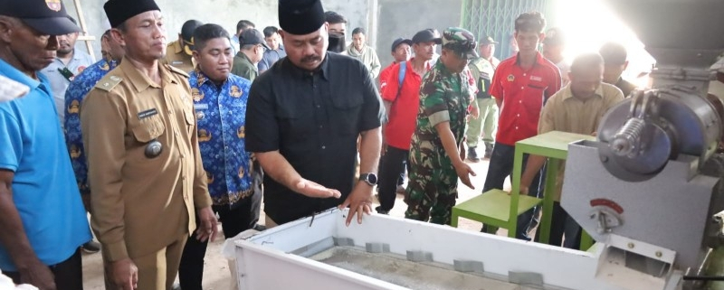 Bupati melihat langsung uji coba penggilingan gabah yang diproses menjadi beras tersebut.