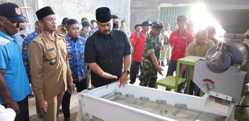 Bupati melihat langsung uji coba penggilingan gabah yang diproses menjadi beras tersebut.