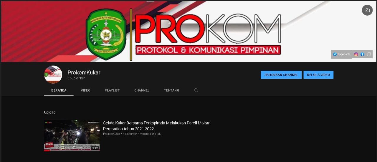 “Akun baru youtube Prokom Kukar telah dibuat yang nantinya untuk mengupload video liputan kegiatan pemkab Kukar terutama yang diakses langsung melalui buletin Blusukan agar tidak terganggu,” ujarnya.